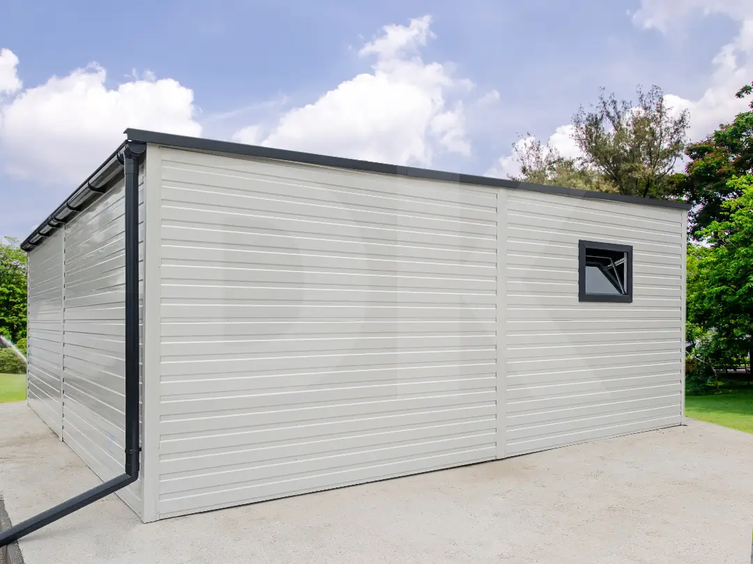 Mobilgarázs hátra lejtős tető 6.0m x 5.8m tiszta fehér színű